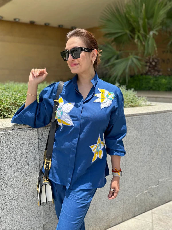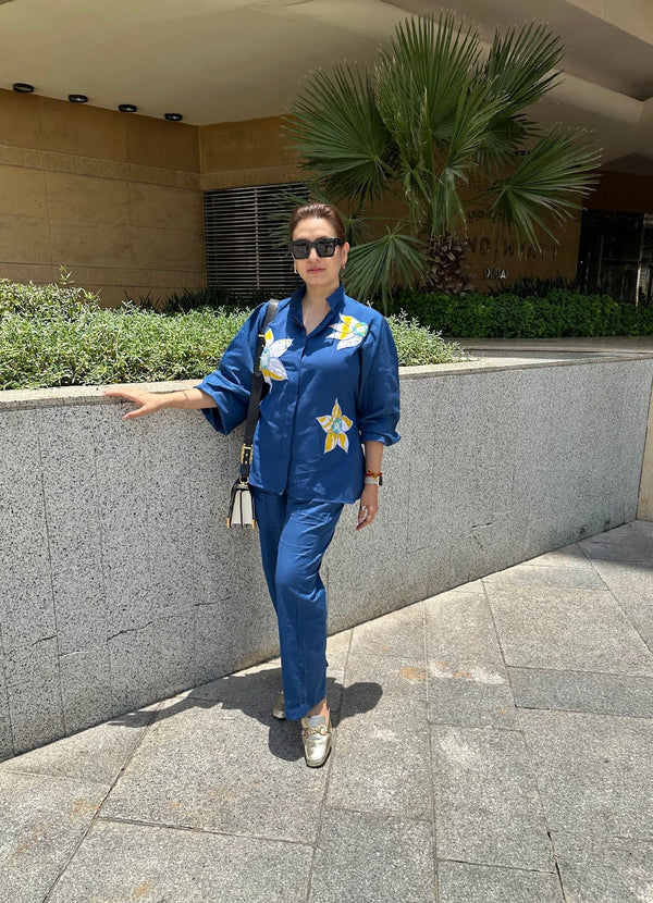 Blue Floral Patch Work Coord Set