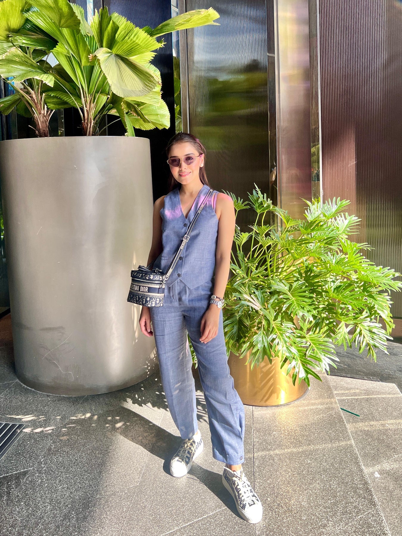 Power dressing meets utility. Crafted using a seasonless linen, the set consists of a sleeveless V-neck waistcoat cut in a slim fit paired with matching baggy pants. The waistcoat features front button closure and welt pockets. The set strikes the perfect balance between comfort and style, making it a must-have addition to your wardrobe this fall.