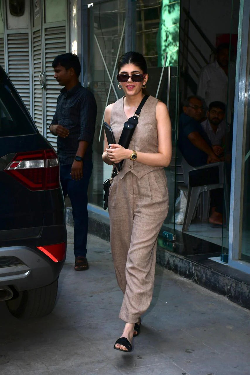 Power dressing meets utility. Crafted using a seasonless linen, the set consists of a sleeveless V-neck waistcoat cut in a slim fit paired with matching baggy pants. The waistcoat features front button closure and welt pockets. The set strikes the perfect balance between comfort and style, making it a must-have addition to your wardrobe this fall.