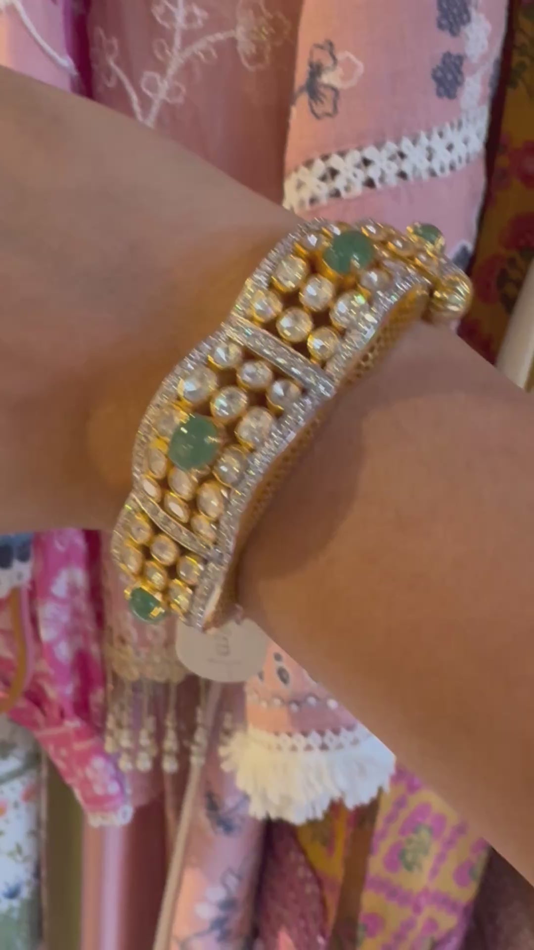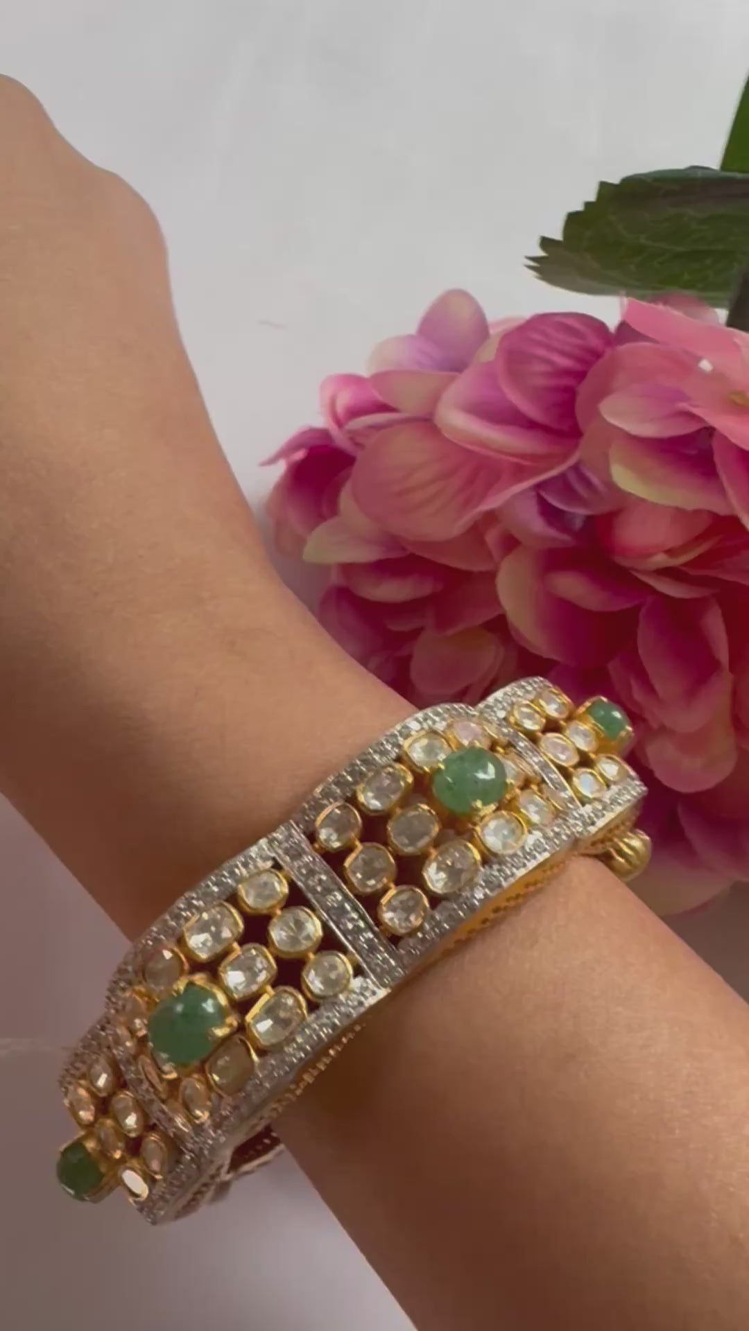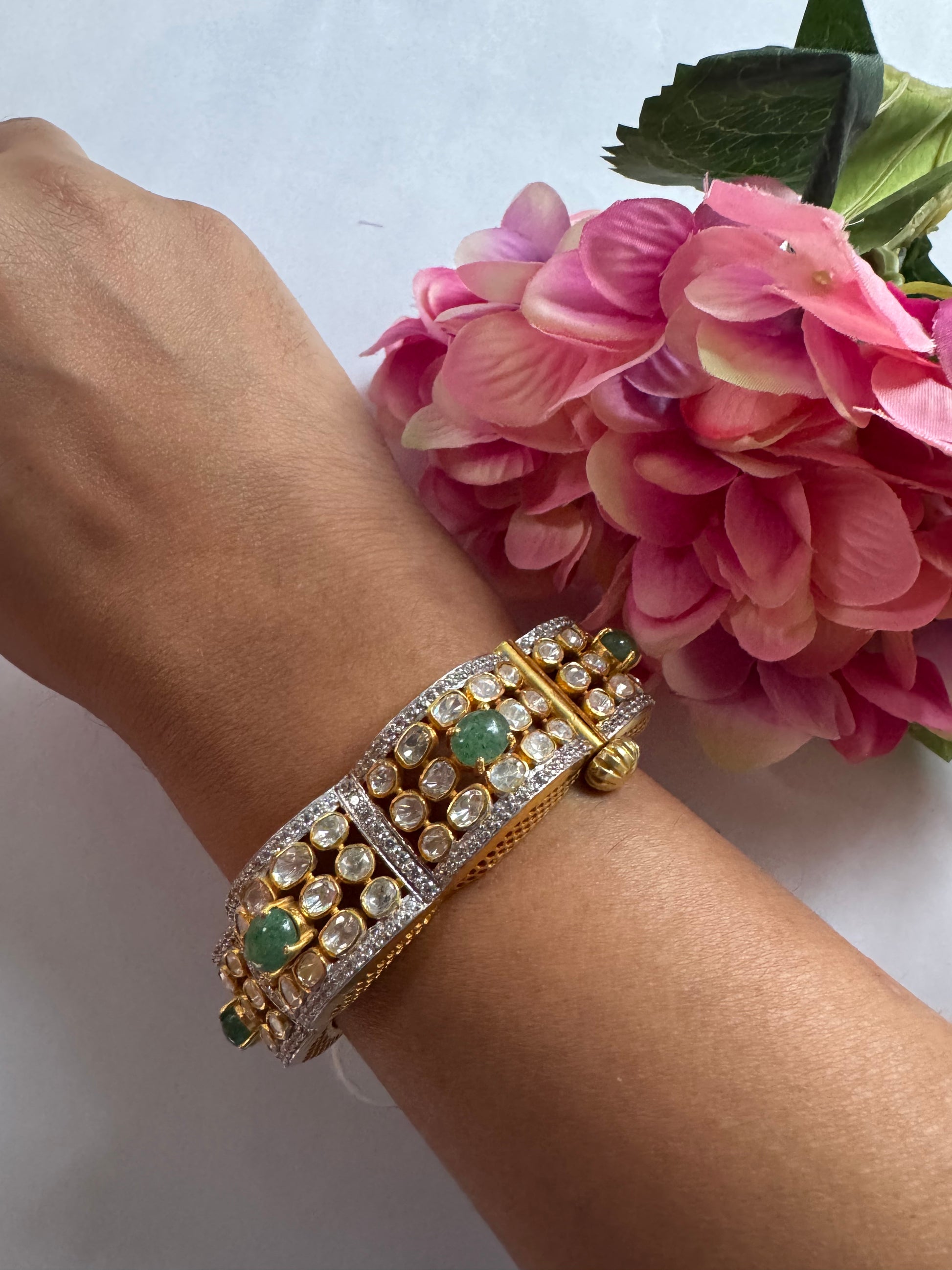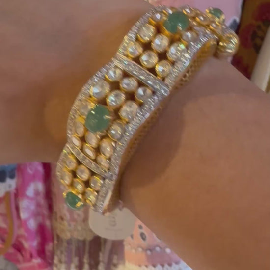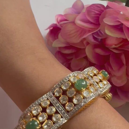 Mozonite Polki Bangle with Lab-Grown Emeralds