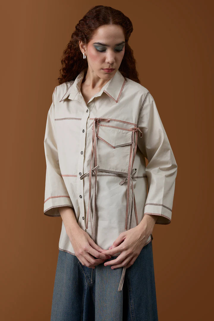 DESCRIPTION: A contemporary relaxed-fit shirt with overlock detail. Another novel take on an everyday shirt.