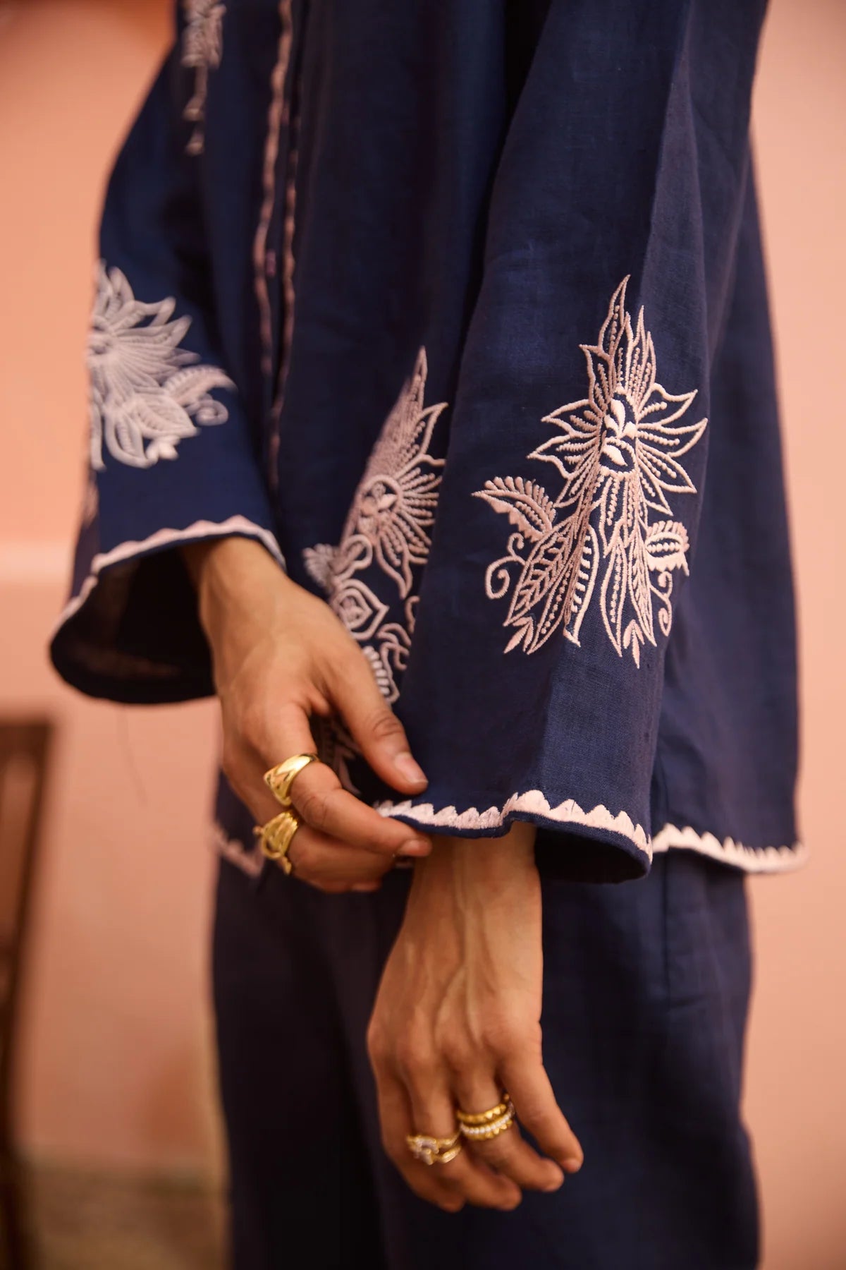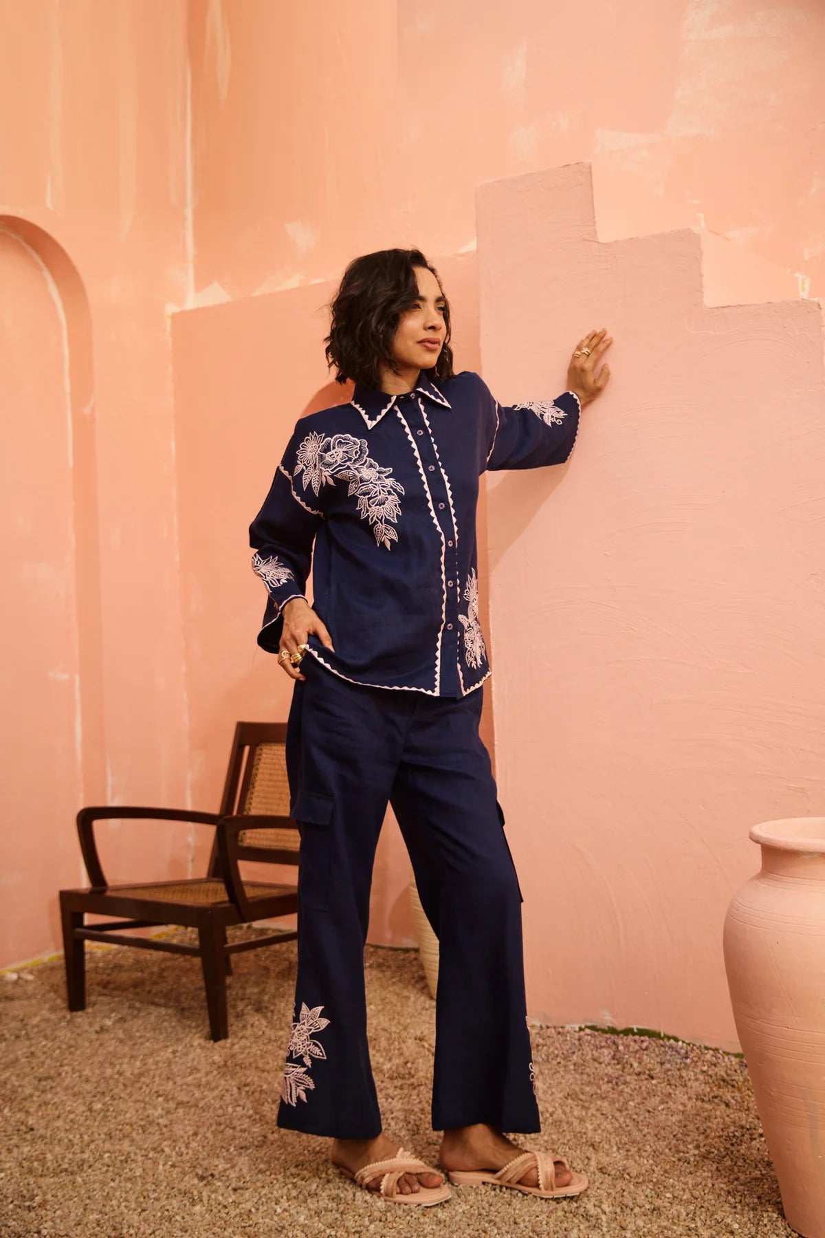 Introducing the Janice Coord Set, crafted from pure linen for a great summer fit. The top and pants feature delicate embroidery, while the button down shirt and relaxed fit flared pants offer an effortless and versatile look that can be styled from day to night. Stay chic with cargo style flap pockets on the pants.