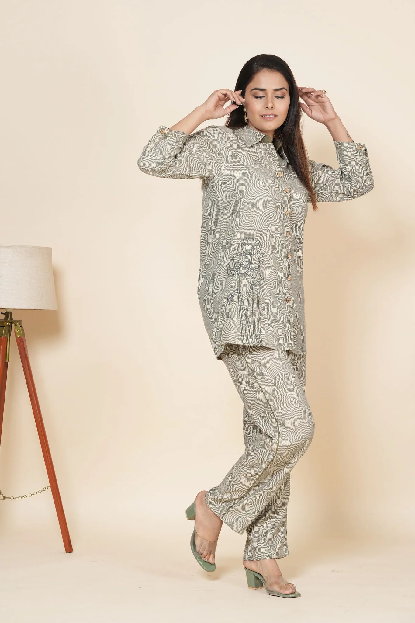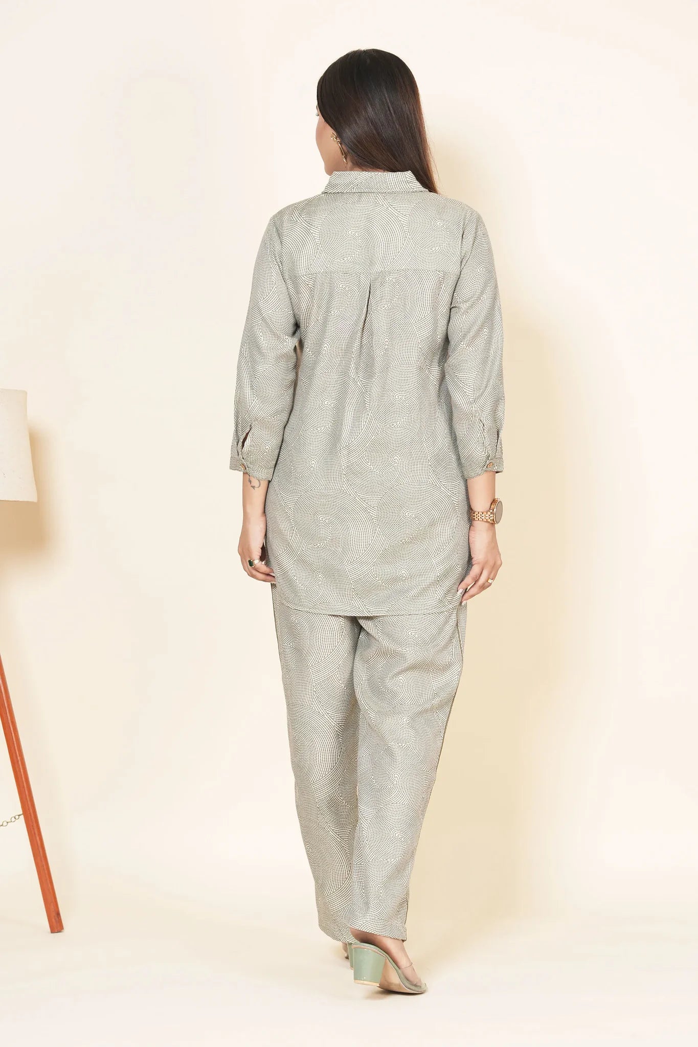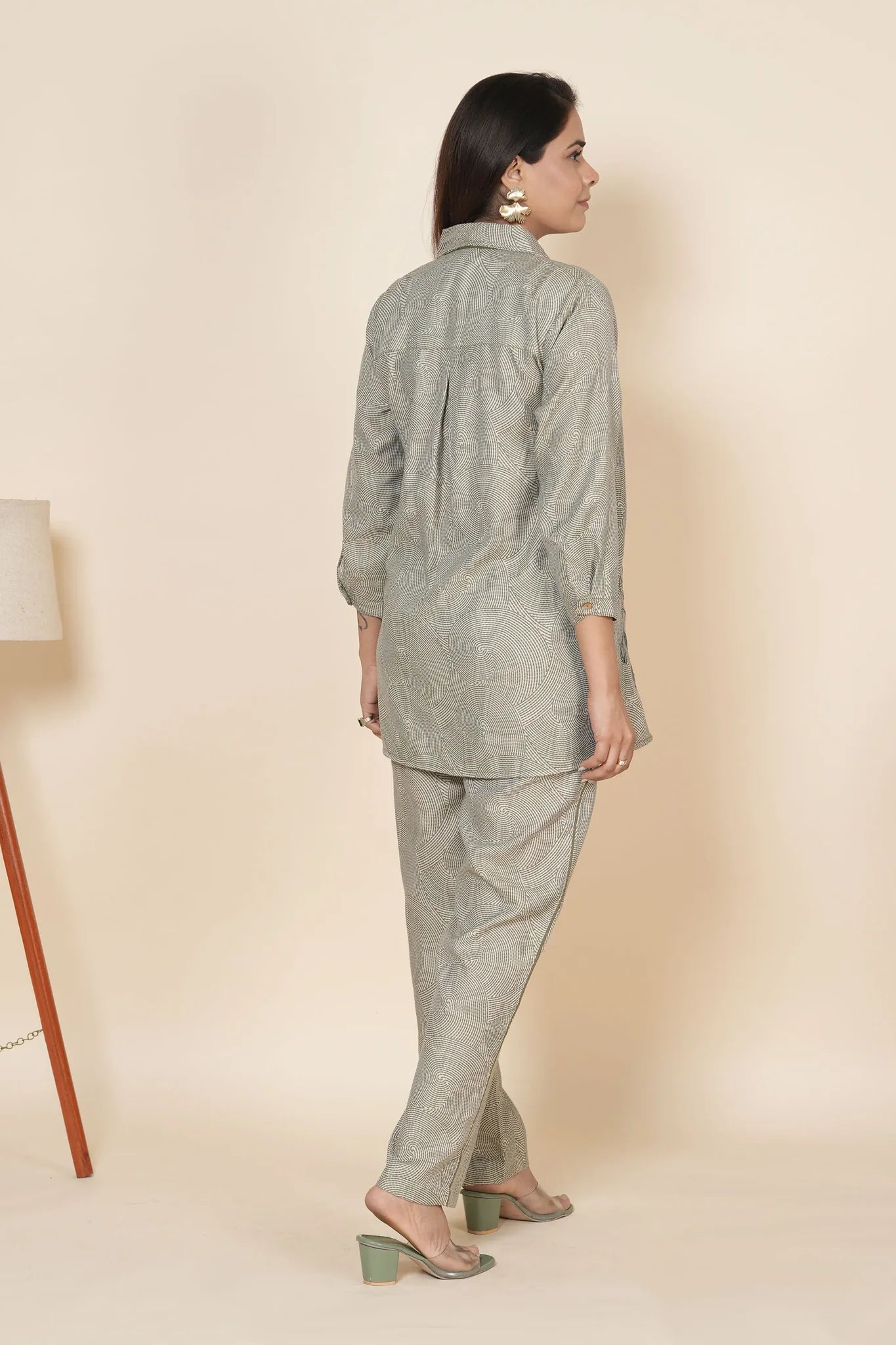 Step into style with the Manaia Mehndi Color Cotton Flex Co-Ord Set, designed for those who appreciate both comfort and sophistication. Made from soft cotton flex fabric, this set offers the perfect balance of breathability and elegance, ensuring you look and feel great throughout the day.