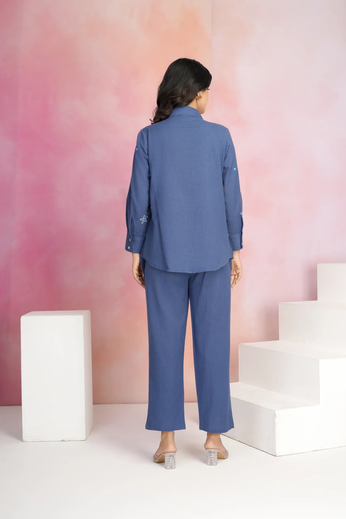 Elevate your casual wardrobe with this navy blue co-ord set—a versatile blend of style, comfort, and sophistication!